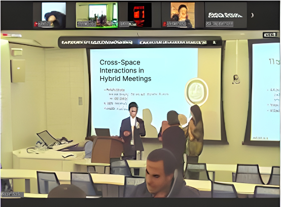 Cross-space interactions, wherein in-person and remote attendees engage with each other, are less smooth and frequent.